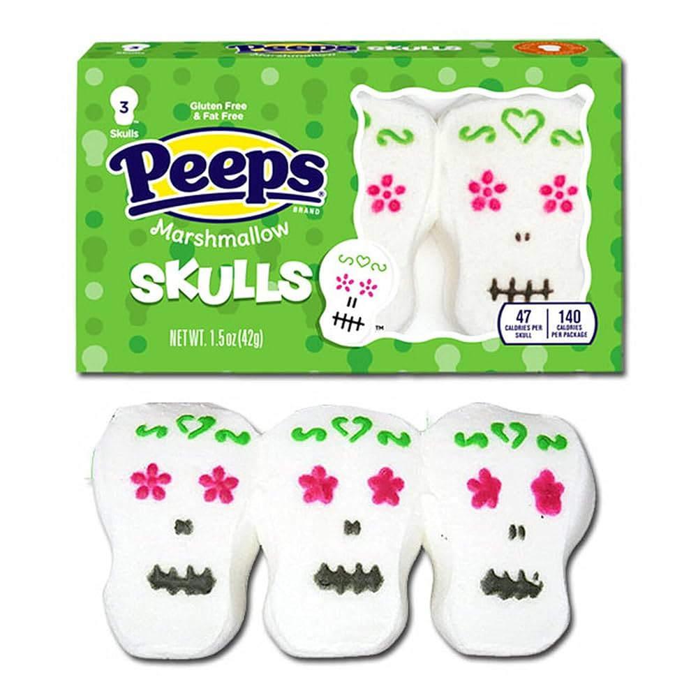 アメリカで大人気のPEEPSブランドから、ハロウィン限定のスカル型マシュマロが登場!ふわふわで甘いマシュマロを可愛いドクロの形にした、見た目も楽しい季節限定商品です。